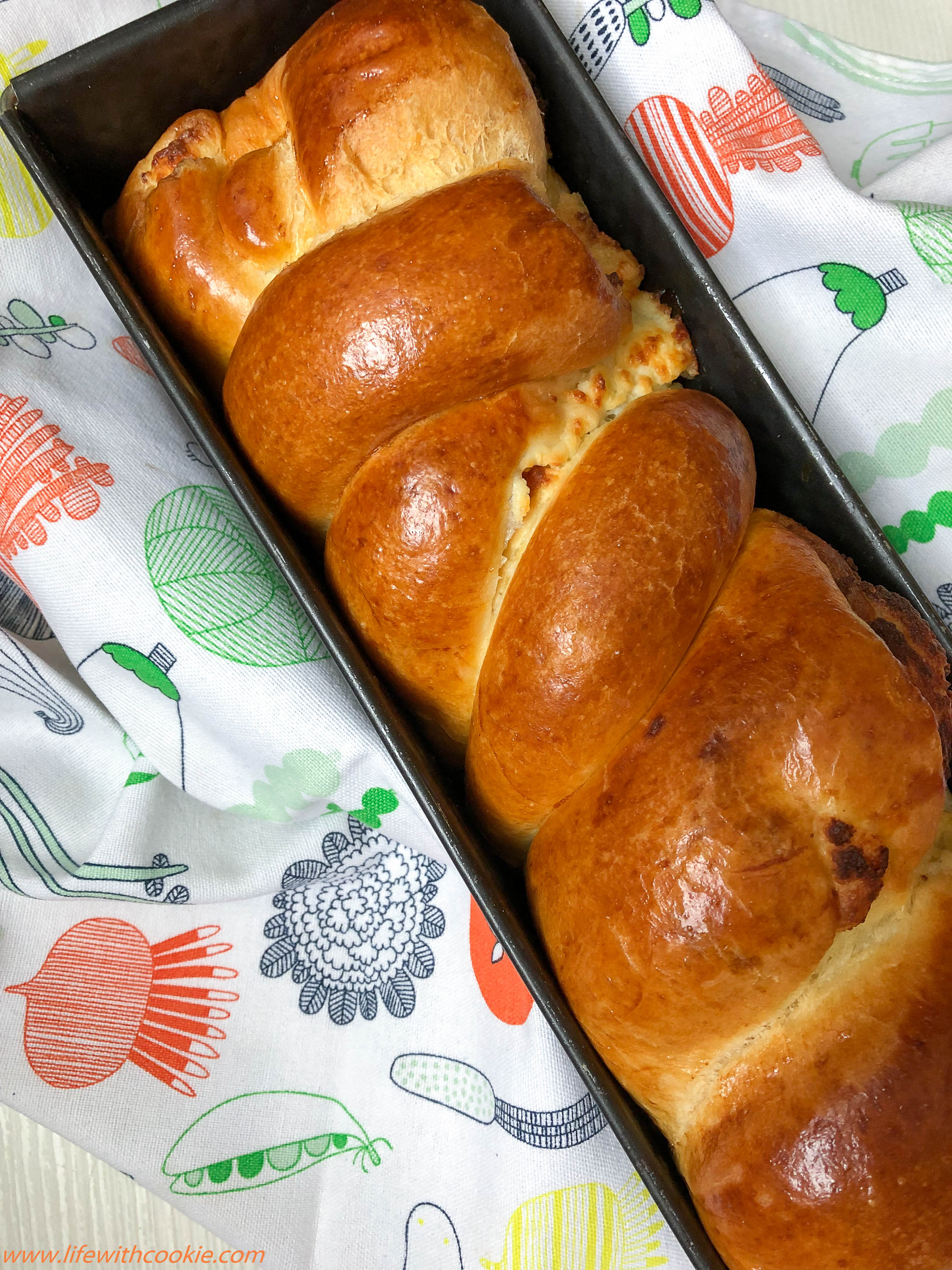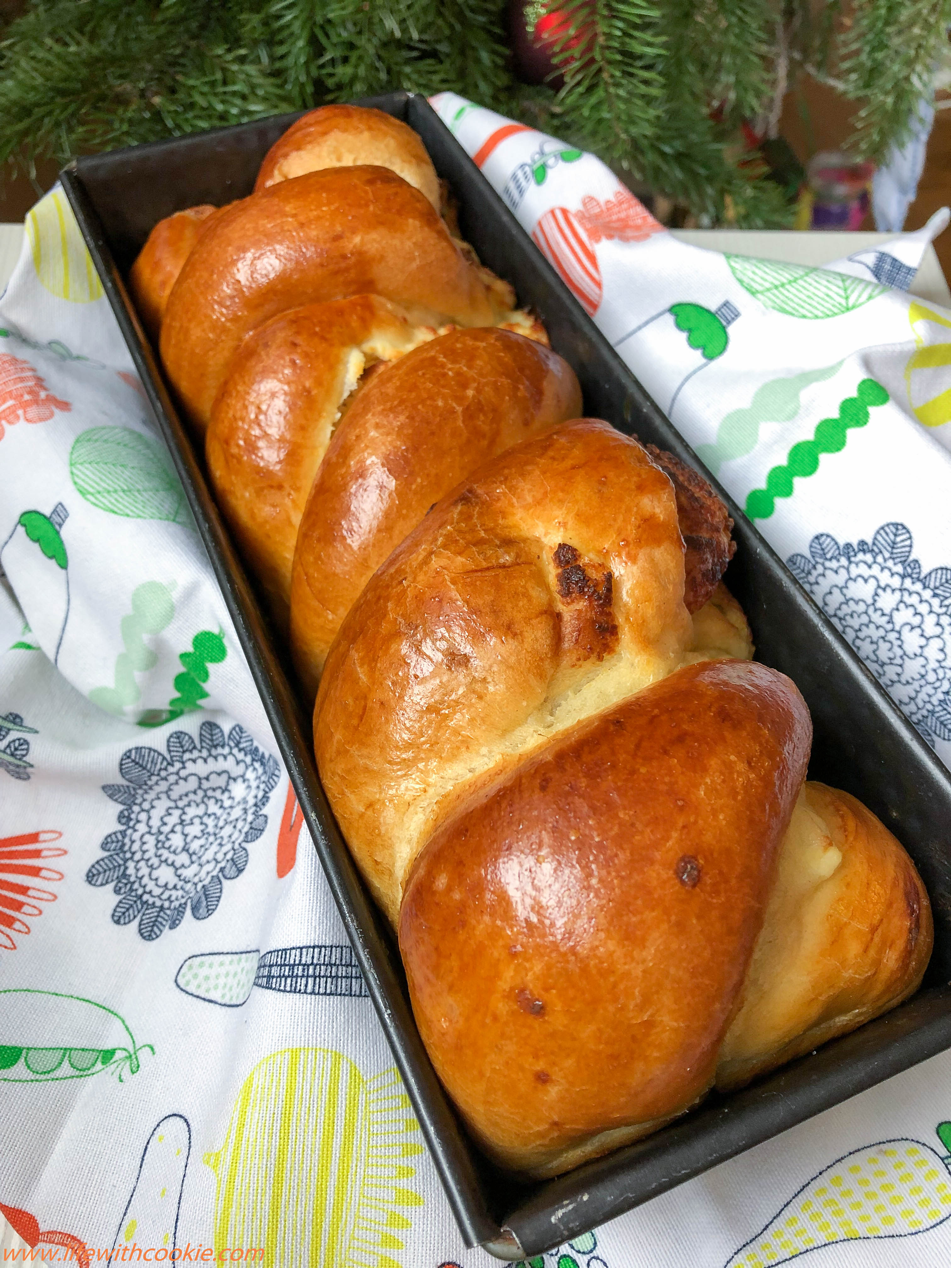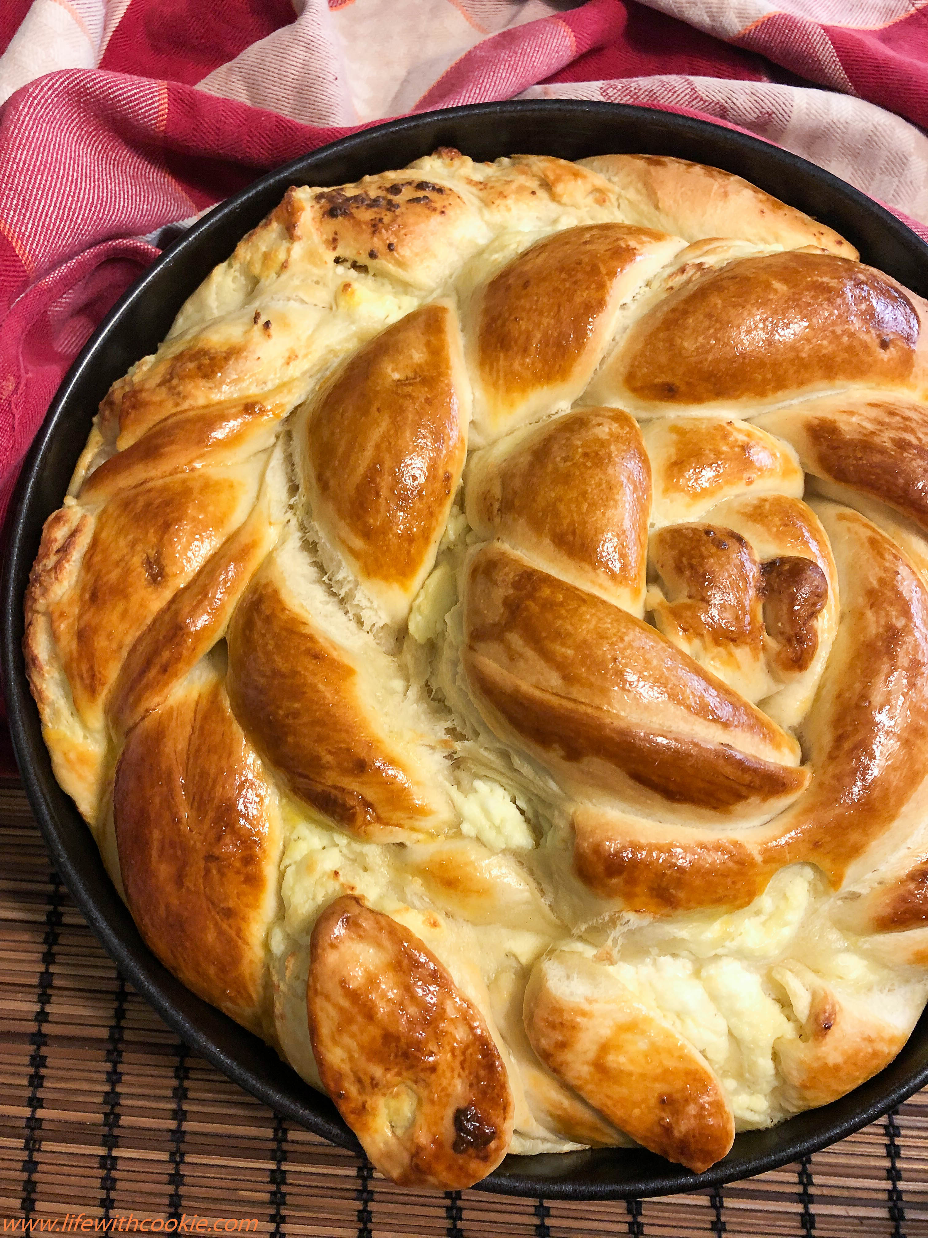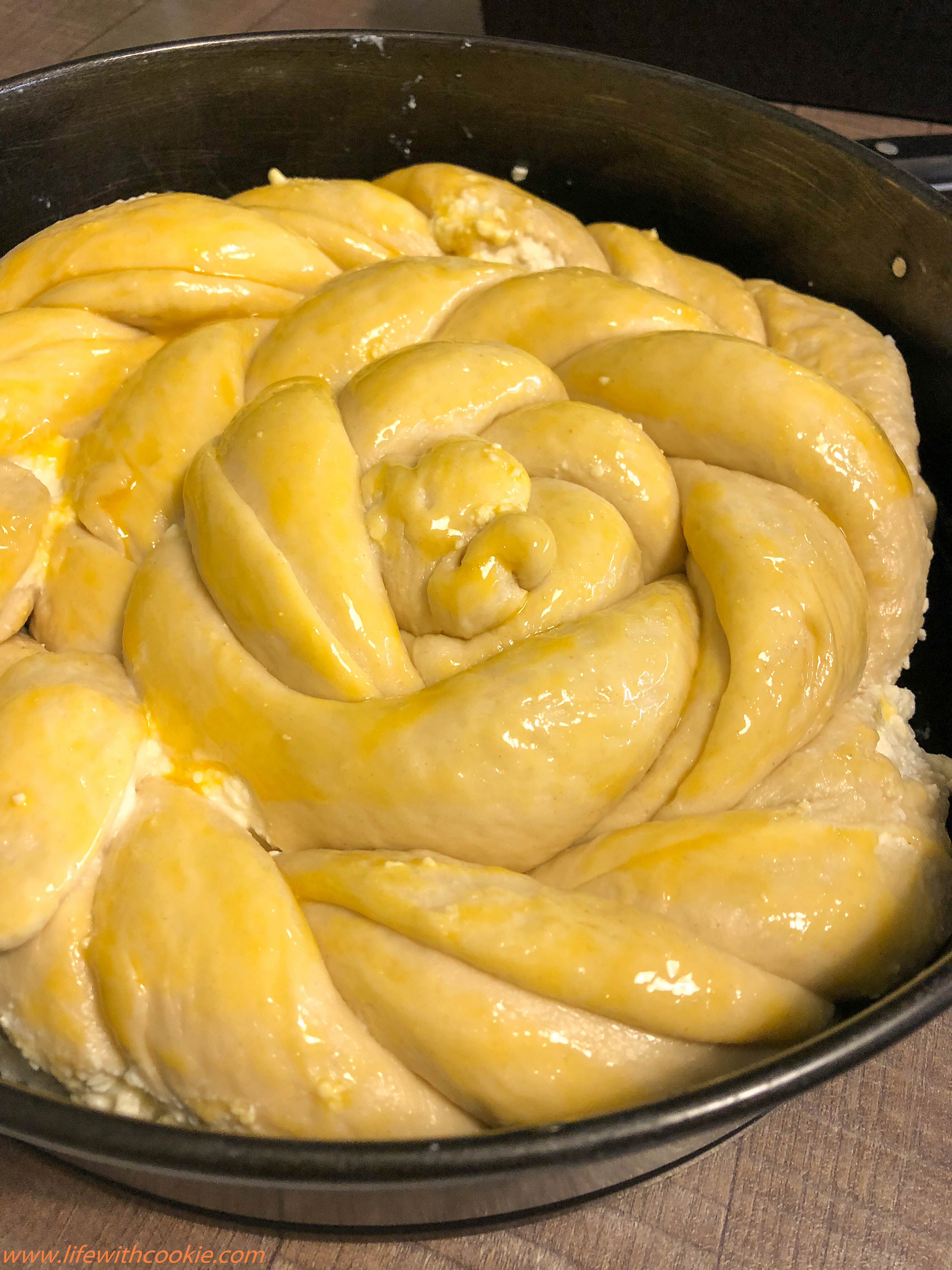 S obzirom da je ovo jako velika smjesa ja sam stavila u kalup za tortu (promjer 28 cm) i jednu dvostruku pletenicu u kalup za kruh. Uglavnom, dobiti ćete toga dosta, tako da ako radite samo za svoju npr.4-ro članu obitelj,dosta vam je pola smjese.